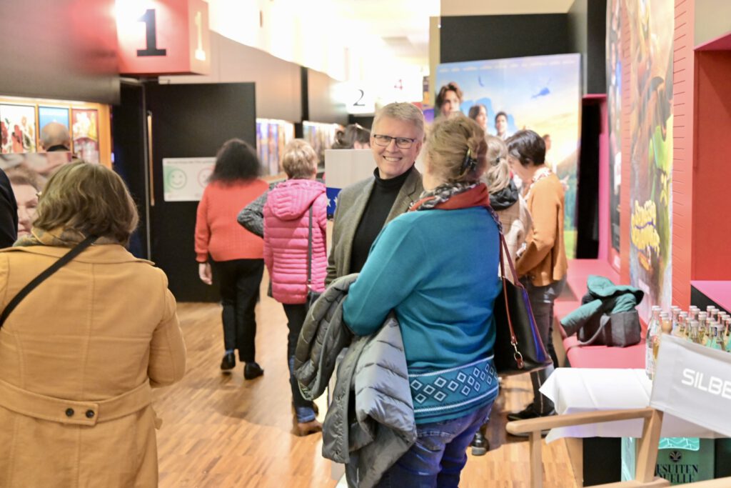 Im Foyer des Kinopalasts war zudem eine kleine Ausstellung aufgebaut, die Einblicke in die Initiative SilberFILM gab: Fotos erzählten von Kinogeschichten und den damit verbundenen Emotionen. Viele Gäste nutzten die Gelegenheit, sich über das Konzept zu informieren, ins Gespräch zu kommen und erste Kontakte zu knüpfen.